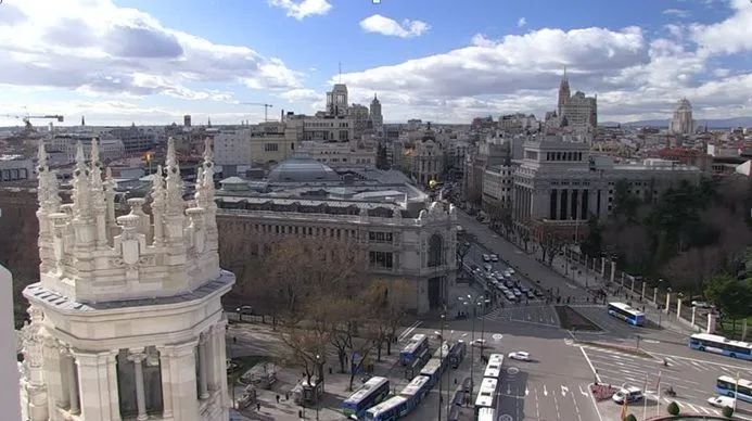 Azotea del Palacio de CibelesSituado en el centro geográfico madrileño por excelencia, la fuente de la diosa Cibeles, se encuentra el antiguo Palacio de Telecomunicaciones, un edificio que engloba todos los neos del siglo XX. Completamente reformado, compartiendo centro cultural con oficinas del Ayuntamiento de Madrid, posee en su parte más alta una bonita terraza donde tomar algo o disfrutar simplemente de todos los edificios de Madrid pero a vista de gigante.
