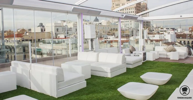 Situarse entre dos cielos, el de su piscina acristalada y el del azul de la ciudad, en una terraza muy ibicenca creada por Tomás Alía, con cómodos sofás de cuero, música de ambiente y camas balinesas en las que recostarse y pasar un buen rato. Chueca, el edificio de Telefónica y otras vistas son las que podrás ver desde esta amplia azotea. Además, la visita puede ser diferente cada vez puesto que está lleno de actividades culturales como microteatro.