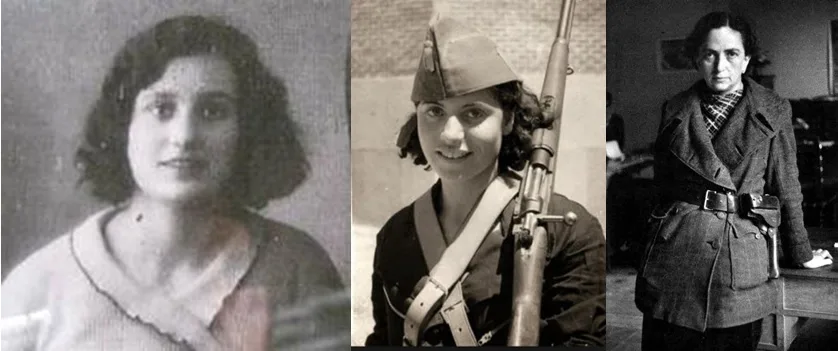 María Pérez Lacruz, La Jabalina, anarchist miliciana who fought in the Iron Column; Rosario Sánchez Mora, La Dinamitera, woman soldier; Micaela Feldman de Etchebéhère, Mika, Argentine captain of the POUM; Fidela Fernández de Velasco Pérez, Fifí; Julia Manzanal Pérez alias Chico; Casilda Hernáez Vargas, Basque libertarian miliciana; Enriqueta Otero Blanco, teacher and miliciana of culture; Amparo Poch y Gascón, doctor and miliciana; Aurora Arnaiz Amigo, law student and miliciana; and Anita Carrillo Domínguez, captain and political commissar.