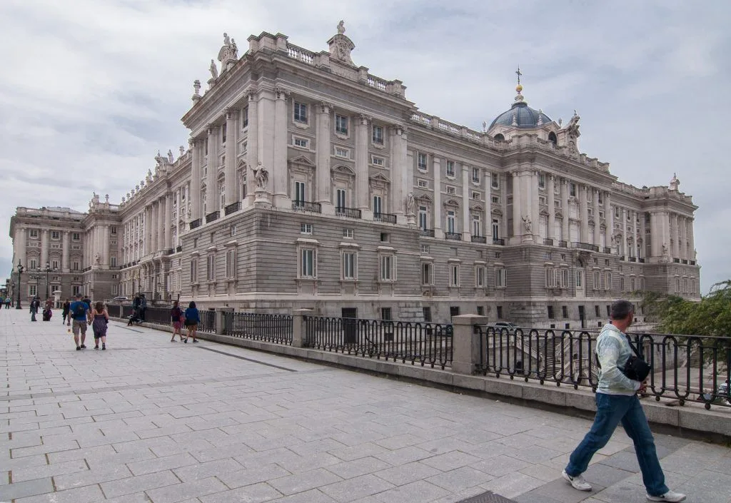 Right next to the cathedral is our beloved Royal Palace, a city gem that — although it doesn't look like it at first glance — is one of the largest palaces in Europe. We don't recommend visiting it inside since there's little time, so if you want to take beautiful photos the best is to go up to the park right in front of the Plaza de Armas, where the best panoramic shots of the complex with Casa de Campo in the background can be found.
