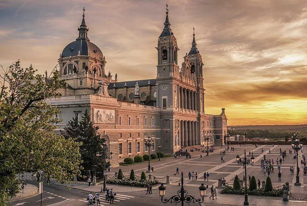 If you walk all the way down Calle Mayor you'll reach the ruins of the first church the city's Patron Saint had — and right across you'll see the new and monumental Catedral de la Almudena. It's one of the few free cathedrals in Spain, and its originality compared to what we're used to visiting surprises everyone who gives it a few minutes.